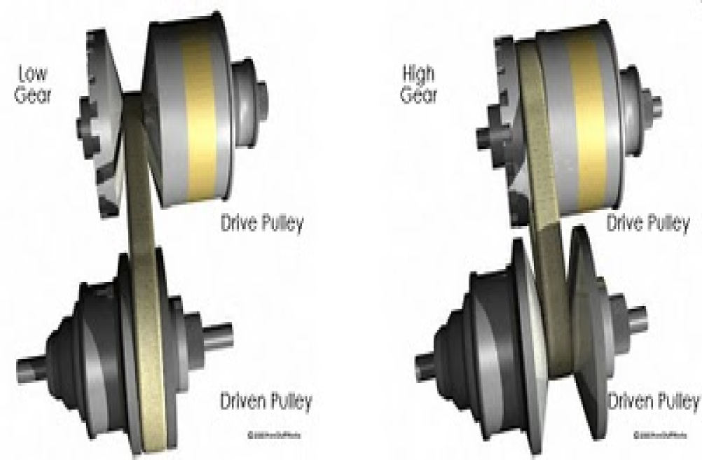 gearbox. Pada CVT secara garis umum tergabung dengan adanya sepasang pulley